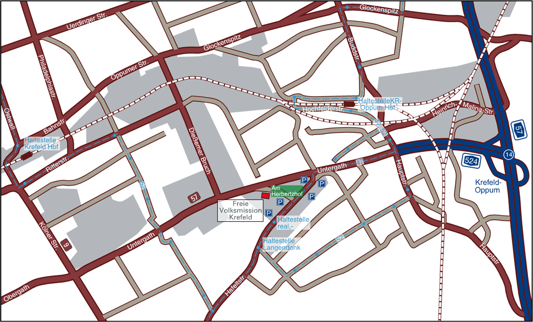com o meio de transporte público a partir da estaςão ferroviária de Krefeld-Oppum:
